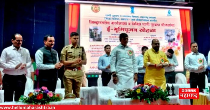 जिल्हा परिषदेच्या स्व. यशवंतराव चव्हाण बहुउद्देशिय सभागृहात पाणी पुरवठा व स्वच्छता विभाग, जिल्हा परिषद, सातारा, जल जीवन मिशन अंतर्गत जिल्हास्तरीय कार्यशाळेचे उद्घाटन व विविध पाणी पुरवठा योजनांचा ई-भूमिपुजन पाणी पुरवठा व स्वच्छता मंत्री श्री. पाटील यांच्या हस्ते झाले. यावेळी ते बोलत होते. या प्रसंगी आमदार महेश शिंदे, जिल्हाधिकारी रुचेश जयवंशी, मुख्य कार्यकारी अधिकारी ज्ञानेश्वर खिलारी, पोलीस अधीक्षक समीर शेख, उपमुख्य कार्यकारी अधिकारी महादेव घुले, ग्रामीण विकास यंत्रणेच्या प्रकल्प संचालक चंचल पाटील, कार्यकारी अभियंता सुनिल शिंदे आदी उपस्थित होते.