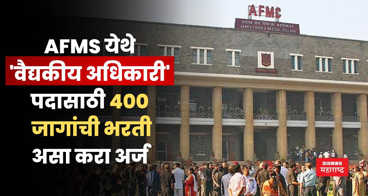 हॅलो महाराष्ट्र ऑनलाईन । AFMS Recruitment 2025 – सशस्त्र सेना वैद्यकीय सेवा (AFMS) येथे ‘वैद्यकीय अधिकारी’ या पदासाठी जाहिरात प्रकाशित करण्यात आली आहे. या पदासाठी एकूण 400 रिक्त जागा देण्यात आल्या आहेत. त्यामुळे जे उमेदवार या जाहिरातीची वाट पाहत होते , त्यांच्यासाठी हि मोठी सुवर्णसंधी ठरणार आहे. यासाठी उमेदवारांनी अधिकृत वेबसाईटला भेट देऊन आपल्या अर्ज ऑनलाईन पद्धतीने भरायचा आहे. तसेच अर्ज करण्याची शेवटची तारीख 13 मे 2025 देण्यात आली आहे. तर या पदासाठी आवश्यक पात्रता आणि अटीशर्ती काय असणार आहेत, याची अधिक माहिती जाणून घेऊयात .