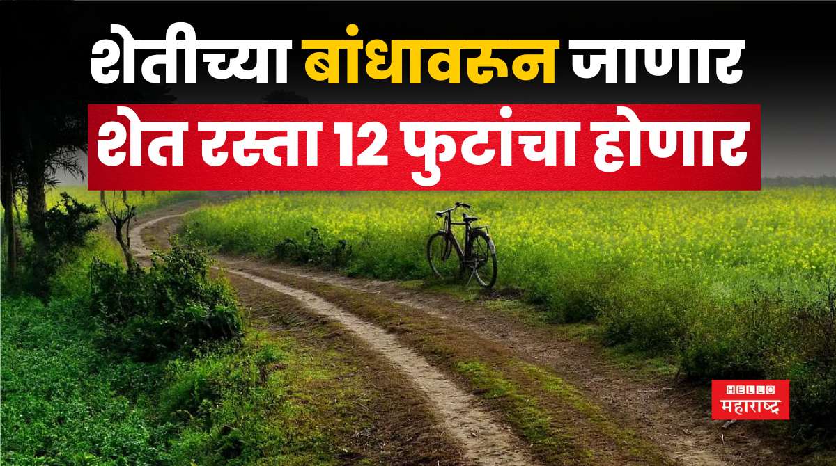 हॅलो महाराष्ट्र ऑनलाईन Agriculture News । राज्यातील शेतकऱ्यांसाठी महत्वाची आणि आनंदाची बातमी आहे. शेतीच्या बांधावरून जाणारा शेत रस्ता १२ फुटांचा करण्याचा निर्णय सरकारने घेतला आहे. राज्याच्या महसूल व वन विभागाने याबाबतचा शासन आदेश जारी केला आहे. सरकारच्या या निर्णयामुळे आधुनिक शेतीला मोठी मदत मिळणार आहे. कारण रस्ता मोठा झाल्याने ट्रॅक्टर, रोटाव्हेटर, हार्वेस्टर, इत्यादी उपकरणे अगदी आरामात शेतीपर्यंत पोहचू शकतील आणि शेतकऱ्याचं कष्ट थोड्याफार प्रमाणात कमी होईल.