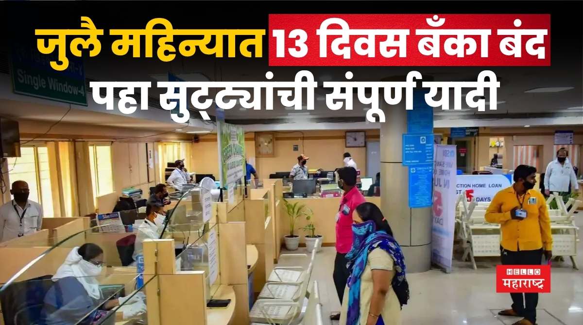 तर रिजर्व बँक ऑफ इंडियाने जारी केलेल्या यादीनुसार, जुलै महिन्यात तब्बल १३ दिवस बँका बंद (Bank Holidays In July 2025) राहणार आहेत. यामध्ये सणवार, विशेष दिन आणि दुसऱ्या आणि चौथ्या शनिवारसह रविवारच्या सुट्ट्यांचा समावेश आहे. मात्र या 13 सुट्ट्या सर्वच राज्यांमध्ये सरसकट लागू नसून अनेक सुट्ट्या प्रादेशिक आहेत. म्हणजेच या 13 सुट्यांमध्येही राज्यनिहाय सुट्यांची संख्या कमी जास्त होणार आहे. अशावेळी कोणत्या दिवशी बँका बंद आहेत हे माहिती करूनच बँकेत जावा अन्यथा तुमचा वेळ फुकट वाया जाऊ शकतो.