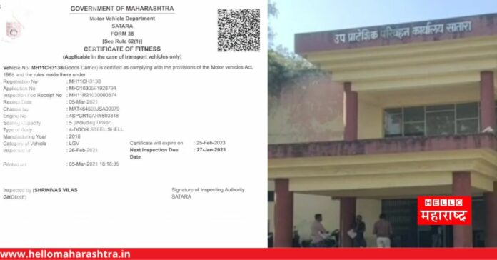 सातारा | येथील उपप्रादेशिक परिवहन कार्यालया मार्फत रोडवेज सोलुशन इन्फ्राच्या 56 वाहनांना बेकायदेशीर फिटनेस दिल्याची माहिती समोर आली आली आहे. सदर फिटनेस देताना उपप्रादेशिक परिवहन अधिकारी विनोद चव्हाण यांनी आपल्या पदाचा गैरवापर करत तत्कालीन कनिष्ठ लिपिक श्रीनिवास घोडके यांना (मोटर वाहन कायदा 1988 च्या कलम 213 नुसार नियुक्त झालेला अधिकारीच म्हणजेच तांत्रिक अर्हता असलेला कमीत कमी सहाय्यक मोटार वाहन निरीक्षक किंवा त्यावरचा अधिकारीच काम करु शकतो). मोटर वाहन तपासणी व योग्यता प्रमाणपत्रांचे नुतनीकरण अधिकार नसताना देखील, हे योग्यता प्रमाणपत्र कसे दिले गेले?. अशा पध्दतीने बेकायदेशीर कामे होत असताना ऑनलाईन सिस्टिमचे एडमिन असलेल्या उपप्रादेशिक परिवहन अधिकारी विनोद चव्हाण नेमकं काय करत होते? त्यांच्या सहमतीनेच सर्व झाले का? नसेल तर? मग ते एडमिन असताना सर्व बेकायदेशीर कसे झाले? असा प्रश्न उपस्थित केला जात आहे. उपप्रादेशिक परिवहन कार्यालयात बेकायदेशीर कामे करून साहेबांनी आणि रायबानी लाखोंची कमाई केली असल्याची जोरदार खमंग चर्चा सध्या आरटीओ कार्यालयात सुरू आहे.