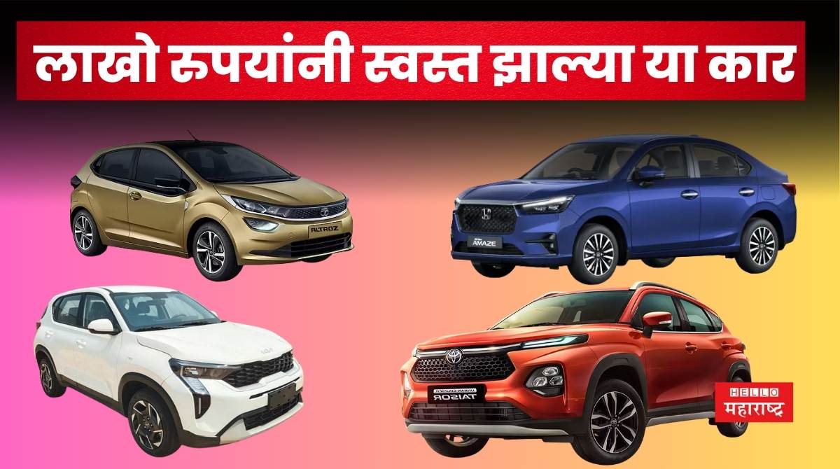 हॅलो महाराष्ट्र ऑनलाईन Car GST Price Cut । केंद्र सरकारने GST दर कमी करत सर्वसामान्य नागरिकांना दिवाळीपूर्वीच मोठी भेट दिली आहे. यामुळे अनेक जीवनावश्यक वस्तूंसोबतच गाड्यांच्या किमतीही मोठ्या प्रमाणात कमी झाल्या आहेत. त्यामुळे दसरा आणि दिवाळीला गाडी खरेदी करणाऱ्या ग्राहकांना मोठा फायदा होणार आहे. केंद्र सरकारच्या नवीन GST दरांनुसार, 4 मीटरपेक्षा लहान (under 4m) गाड्यांवर सर्वात जास्त जीएसटी कपात झाली आहे. अनेक गाड्यांच्या किंमतीत बदल झाला असला तरी, काही विशिष्ट गाड्यांना 1 लाखांपेक्षा जास्त सूट मिळालाय आहे. तुम्हीही दिवाळीला किंवा दसऱ्याला नवीन गाडी घेणार असाल तर आज आम्ही तुम्हाला अशाच काही गाड्यांबद्दल सांगणार आहोत, ज्या जीएसटी कपातीनंतर लाखो रुपयांनी स्वस्त झाल्या आहेत. चला तर मग पाहुयात कोणती कार किती रुपयांनी स्वस्त झाली आहे.