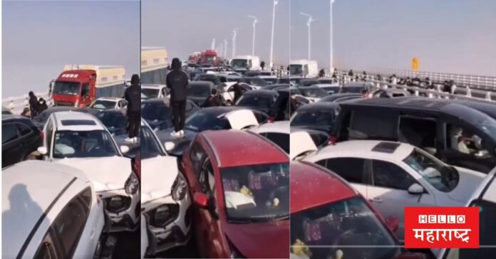 चीनमधील एका पुलावर एका मागोमाग एक करत 200 गाड्या एकमेकांवर आदळल्या. ही घटना बुधवारी सकाळी घडली. या घटनेचे व्हिडीओ सोशल मीडियावर व्हायरल झाला आहे. या व्हिडीओत झेंगक्सिन हुआंगे पुलावर काही गाड्या आणि ट्रकचा अपघात झाल्याचे दिसत आहे. काही ठिकाणी गाड्या दुसऱ्या गाड्यांवर चढल्याचं दिसत आहे. या अपघातात काही जण जखमी झाले आहे. त्यांना तातडीने रुग्णालयात दाखल करण्यात आले आहे.