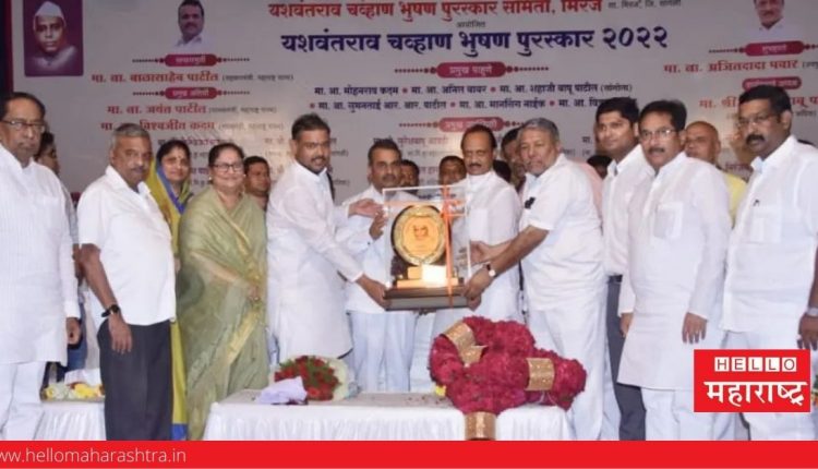 यावेळी आमदर अनिल बाबर, आ. शहाजी पाटील, काँग्रेसचे नेते पृथ्वीराज पाटील, आदी उपस्थित होते. प्रारंभी यशवंतराव चव्हाण भूषण पुरस्कार समितीचे सचिव विठ्ठल पाटील यांनी स्वागत केले.