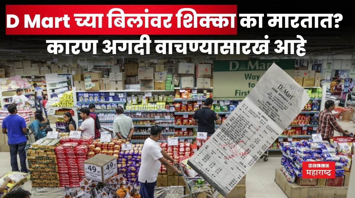 हॅलो महाराष्ट्र ऑनलाईन । D Mart तर तुम्ही नक्कीच सतत जात असाल आणि नवनवीन वस्तूंची आणि सामानाची खरेदी करत असाल. आपल्या समोर डीमार्ट म्हटले कि भलं मोठं किराणामालाचे दुकान,महागड्या कपड्याची दुकाने, स्मार्टफोन मोबाईलचे दुकाने, सर्वत्र असणारी स्वच्याता,आकर्षक वस्तू असं चित्र उभा राहतं .देशातील प्रमुख शहरात मोठ्या प्रमाणात अनेक डी मार्टची दुकाने उभी आहेत. देशातील श्रीमंत आणि मध्यमवर्गीय लोकांची पसंती डी मार्टला असते.आपल्या दैनदिन जीवनात उपयोगी पडणारी प्रत्येक वस्तू हि डी मार्ट मध्ये मिळत असल्याने ग्राहक मोठ्या संख्येने डीमार्टच्या खरेदीला प्राधान्य देत असतात महत्वाची गोष्ट म्हणजे दिवाळी ,दसरा, अशा सनानिमित्य सवलतीच्या मोठ्या बंपर ऑफर असतात त्याचा देखील लाभ ग्राहक घेतात.पण ग्राहकांना अनेक वेळा प्रश्न पडला असेल कि बिल देऊन बाहेर जाताना बिलावर शिक्का का मारत असतील? शिक्का मारून नेमकं काय साध्य होतंय? चला तर जाणून घेऊयात…