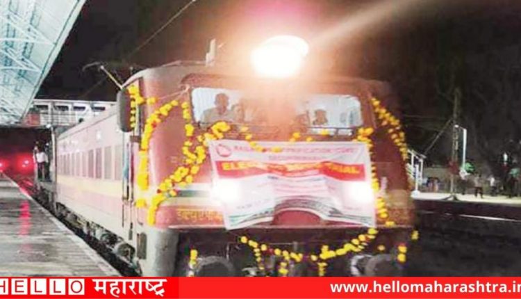 औरंगाबाद – बहुप्रतिक्षित मनमाड ते मुदखेड रेल्वे मार्गाच्या विद्युतीकरणाच्या पहिल्या टप्प्यात मनमाड (अंकाई) ते रोटेगावदरम्यान विद्युतीकरणाचे काम पूर्ण झाले असून, या मार्गावर काल सायंकाळी इलेक्ट्रिक रेल्वे इंजिन धावले. हा क्षण पाहणे रेल्वे प्रवाशांसाठी आनंददायी ठरला. आता पुढील टप्प्यात औरंगाबादपर्यंत इलेक्ट्रिक रेल्वे इंजिन धावेल. त्यामुळे रेल्वेचा प्रवास गतिमान होण्यास मदत होईल.