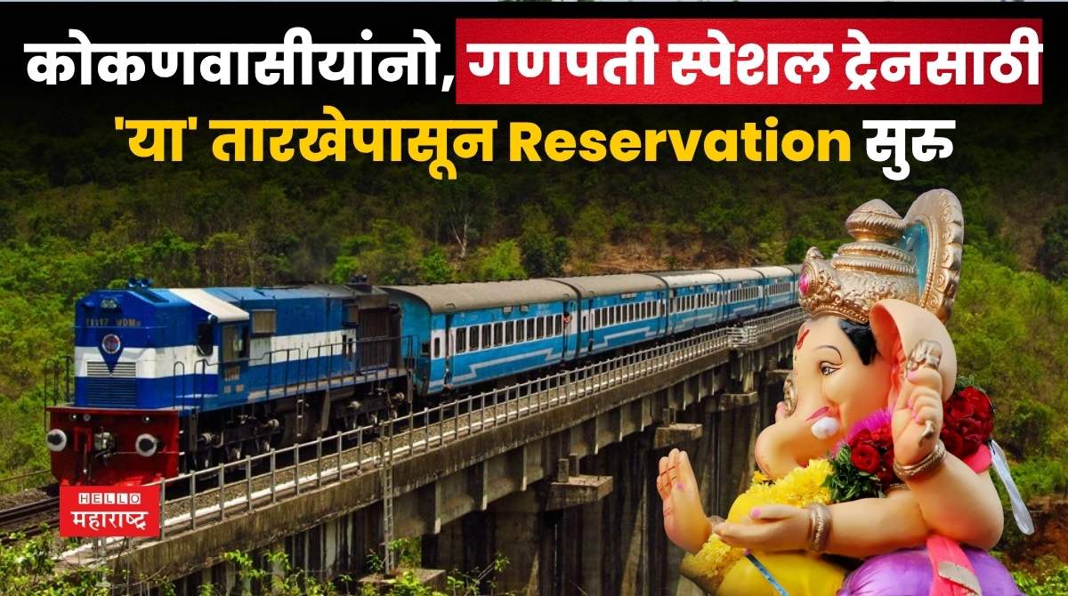 हॅलो महाराष्ट्र ऑनलाईन Ganesh Festival Train Reservation । गणपतीचा सण म्हणजे कोकणी माणसाचा आवडता सण… मुंबई- पुण्यातील कोकणी चाकरमानी एकवेळ दिवाळीला मूळ गावी म्हणजेत कोकणात जायच टाळेल, पण गणेशोत्सवाच्या काळात तो कोकणात जाणार म्हणजे जाणारच… या वर्षी गणेशोत्सव 27 ऑगस्टलाच आला आहे. यंदा गणेशोत्सव लवकर आल्याने प्रवाशांना आता चिंता लागून राहिलेये ती ट्रेनच्या तिकीटांची…परंतु कोकणवासीयांसाठी रेल्वेने दरवर्षीप्रमाणे या वेळीही गणपती विशेष गाड्या चालवण्याचा निर्णय घेतला आहे. येत्या 23 जूनपासून या गाड्यांच्या तिकिटासाठीचे रिजर्वेशन म्हणजेच आरक्षण सुरु होणार आहे.