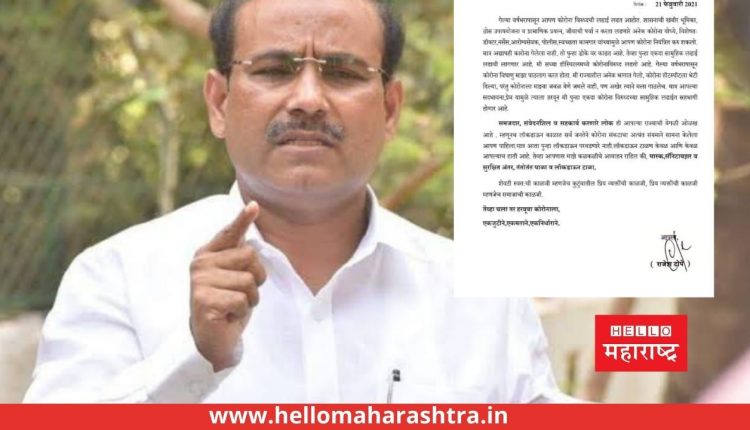 हॅलो महाराष्ट्र ऑनलाइन | देशात आणि राज्यात महाभयंकर कोरोना विषाणूने पुन्हा एकदा डोकं वर काढल्या नंतर जनतेची चिंता वाढली आहे. मुख्यमंत्री उद्धव ठाकरे यांनी काल राज्यातील जनतेला संभोधित केल्यानंतर आता राज्याचे आरोग्यमंत्री राजेश टोपे यांनी महाराष्ट्रातील जनतेला कळकळीने पत्र लिहुन आवाहन केले आहे. करोनाचा प्रादुर्भाव झाल्यापासून राज्यभर फिरून आरोग्य सेवेचा आढावा घेणाऱ्या आरोग्य मंत्री राजेश टोपे यांना मागील आठवड्यात करोनाचा संसर्ग झाल्याचं निष्पन्न झालं. चाचणी अहवाल पॉझिटिव्ह आल्यानंतर राजेश टोपे रुग्णालयात दाखल झाले होते. सध्या त्यांच्यावर उपचार सुरू असताना राज्यात करोनाचं संकट पुन्हा बळावलं आहे.