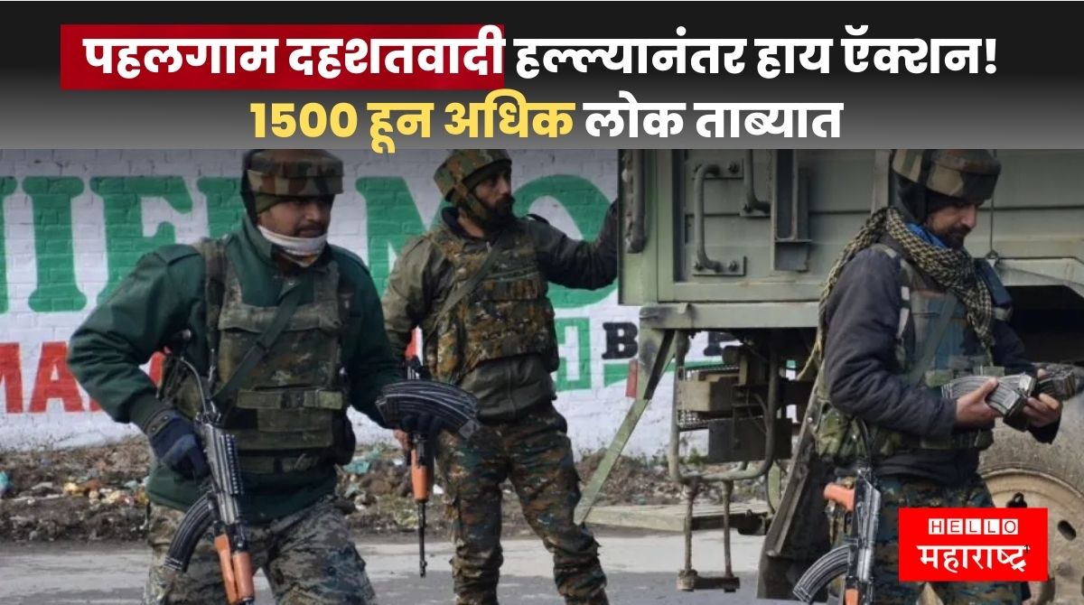 Pahalgam Terrorist Attack :जम्मू-कश्मीरमधील प्रसिद्ध पर्यटन स्थळ पहलगाम येथे झालेल्या दहशतवादी हल्ल्यानंतर सुरक्षादलांनी मोठी कारवाई केली आहे. काश्मीर खोऱ्यातून १५०० हून अधिक व्यक्तींना ताब्यात घेण्यात आले आहे. या व्यक्तींमध्ये ओव्हर ग्राउंड वर्कर्स (OGW) आणि दहशतवादी कारवायांमध्ये सहभागी असलेल्यांचा समावेश आहे.