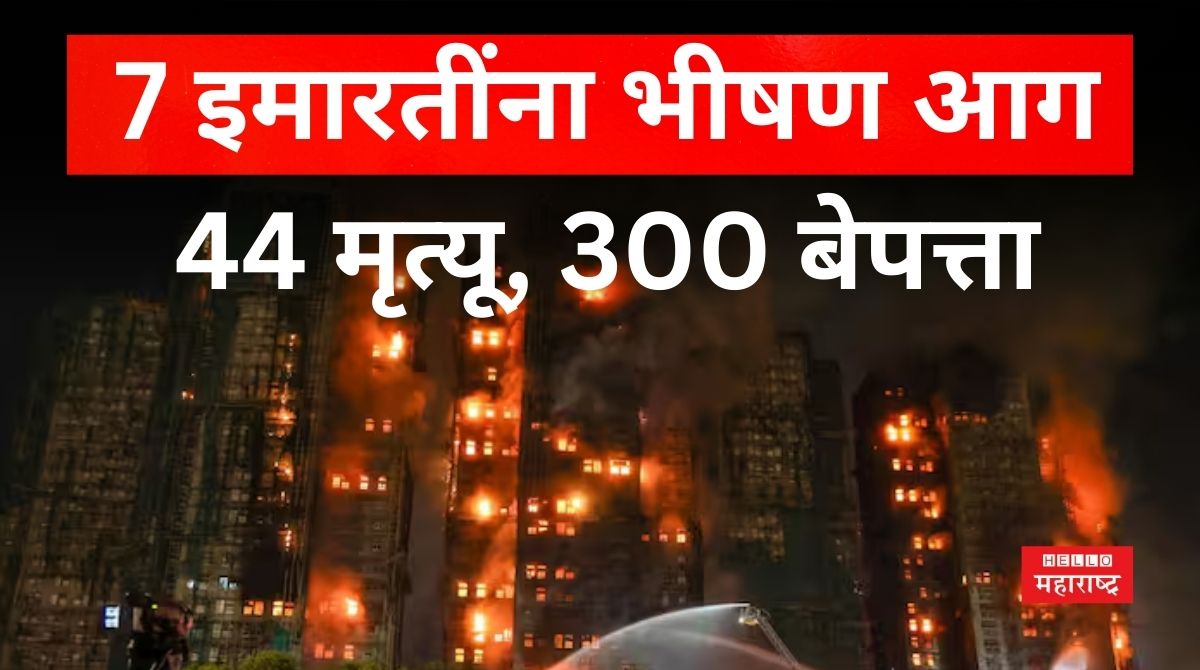 हॅलो महाराष्ट्र ऑनलाईन । Hong Kong Fire जागतिक पटलावरून एक मोठी आणि धक्कादायक बातमी समोर येत आहे. एकाच भागातील ७ इमारतींना भीषण आग लागली आहे. या आगीत आत्तापर्यंत ४४ लोकांना आपला जीव गमवावा लागला आहे, तर ३०० हुन अधिकजण गंभीररित्या जखमी आहेत. इमारती उंचच उंच असल्याने बचावकार्याला मोठ्या अडचणींचा सामना करावा लागतोय.आगीची हि घटना हॉंगकॉंग मध्ये घडली आहे.