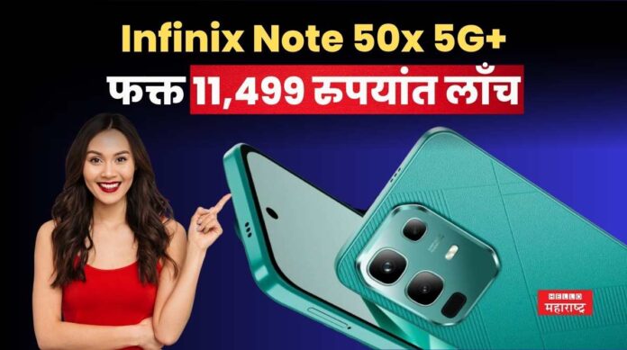 हॅलो महाराष्ट्र ऑनलाईन । प्रसिद्ध मोबाईल निर्माता कंपनी Infinix ने भारतीय बाजारात ग्राहकांना परवडेल अशा स्वस्तात मस्त किमतीत नवा मोबाईल लाँच केला आहे. Infinix Note 50x 5G+ असं या स्मार्टफोनचे नाव असून यामध्ये 8GB रॅम, 50MP कॅमेरा, 5500mAh बॅटरी यांसारखे दमदार फीचर्स मिळतात. कंपनीने मोबाईलची किंमत सुद्धा अतिशय कमी ठेवली आहे. Infinix Note 50x 5G+ च्या 6GB+128GB स्टोरेज व्हेरिएंटसाठी किंमत 11,499 रुपये ठेवण्यात आली आहे. तर ८ GB+ १२८ GB स्टोरेज व्हेरिएंट १२,९९९ रुपयांना उपलब्ध आहे. येत्या ३ एप्रिल रोजी दुपारी १२ वाजता हा मोबाईल बाजारात विक्री साठी खुला होणार आहे. आज आपण या स्मार्टफोनची खास वैशिष्ट्ये जाणून घेणार आहोत.