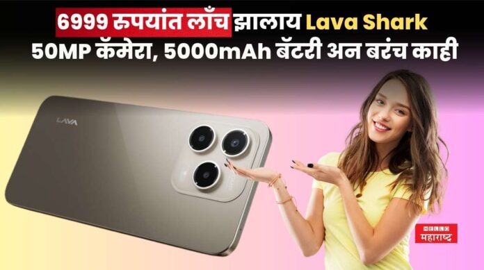 हॅलो महाराष्ट्र ऑनलाईन । भारतीय मोबाईल निर्माता ब्रँड Lava ने ग्राहकांना परवडेल अशा स्वस्तात मस्त किमतीत नवा स्मार्टफोन लाँच केला आहे. Lava Shark असं या मोबाईलचे नाव असून या स्मार्टफोनची किंमत अवघी ६,९९९ रुपये ठेवण्यात आली आहे.. किंमत जरी कमी असली तरी यात भलामोठा डिस्प्ले, ५०-मेगापिक्सेलचा मुख्य कॅमेरा, 5000mAh ची बॅटरी यांसारखे खास फीचर्स देण्यात आले आहेत. आज आपण Lava Shark चे संपूर्ण स्पेसिफिकेशन जाणून घेऊयात….
