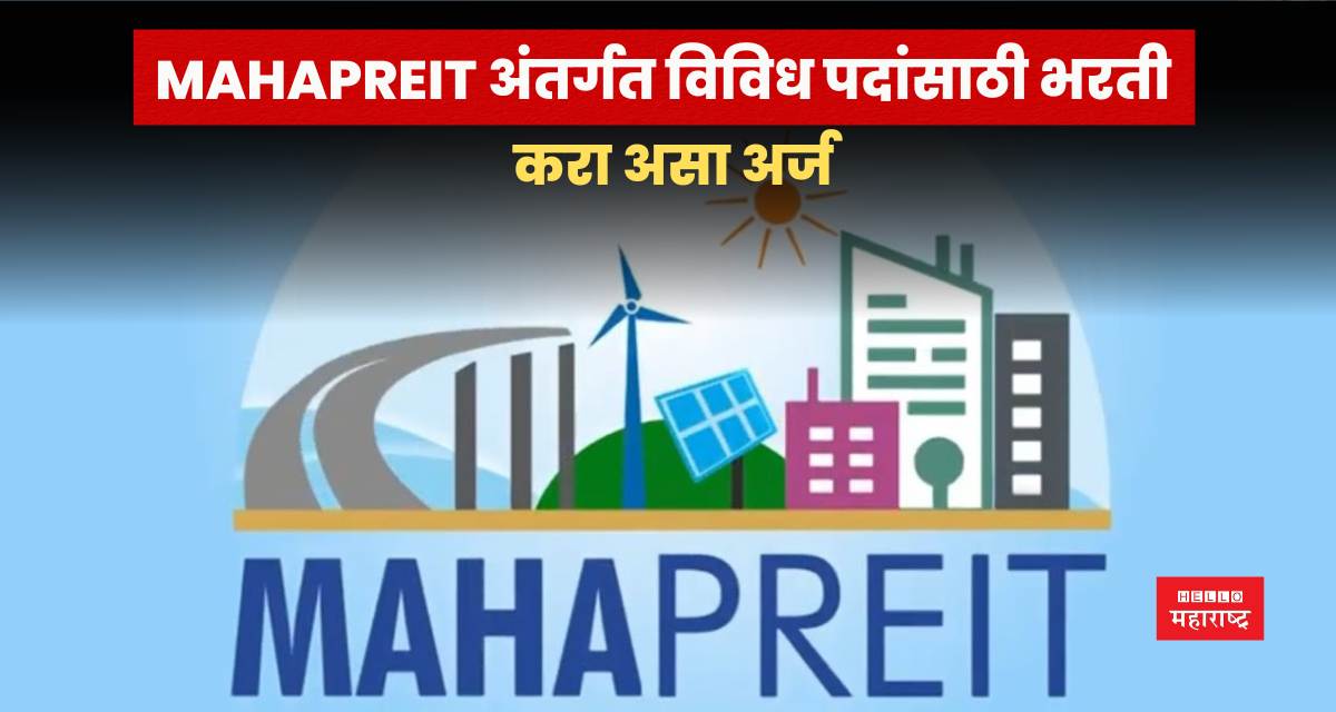 हॅलो महाराष्ट्र ऑनलाईन । MAHAPREIT Bharti 2025 – महात्मा फुले अक्षय ऊर्जा आणि पायाभूत सुविधा तंत्रज्ञान लि (MAHAPREIT)अंतर्गत विविध पदांसाठी जाहिरात प्रकाशित झाली आहे. या भरतीतून “मुख्य महाव्यवस्थापक (नियामक आणि व्यावसायिक विभाग), महाव्यवस्थापक, कार्यकारी अभियंता, वैयक्तिक सहाय्यक आणि समन्वयक, उपअभियंता, वरिष्ठ विश्लेषक (गुंतवणूक बँकिंग), सहाय्यक अभियंता, सहाय्यक अभियंता” पदे भरली जाणार आहेत . तसेच या सर्व पदांसाठी एकूण 22 रिक्त जागा आहेत. 24 फेब्रुवारी 2025 पर्यंत या पदासाठी अर्ज मागवण्यात आले असून , पात्र आणि इच्छुक उमेदवारांनी अर्ज ऑफलाईन पद्धतीने करायचा आहे.