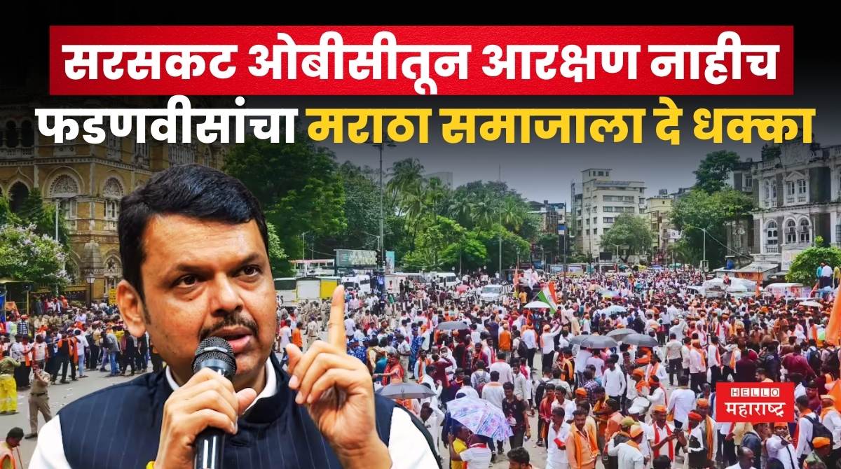 हॅलो महाराष्ट्र ऑनलाईन । कोणत्याही परिस्थितीत आम्हाला ओबीसी मधूनच आरक्षण पाहिजे अशी मागणी लावून मनोज जरांगे पाटील यांनी मुंबईतील आझाद मैदानावर उपोषण केलं होते. यानंतर जिरंगे यांचे उपोषण सोडवण्यासाठी राज्य सरकारने हैदराबाद गॅझेटची अंमलबजावणी करण्याबाबत जीआर काढला.. सरकारच्या या निर्णयानंतर जरांगे पाटील यांनी आपलं उपोषण स्थगीत केलं आणि मराठा समाजाने मोठा जल्लोष साजरा केला. हैदराबाद गॅझेट आणि सातारा गॅझेटची अंमलबजावणी झाल्यानंतर सर्व मराठ्यांची कुणबी सर्टिफिकेट सापडतील आणि ओबीसी मधून आरक्षण मिळण्याचा मार्ग मोकळा होईल असं बोललं जात आहे. मात्र आता मुख्यमंत्री देवेंद्र फडणवीस यांच्या एका विधानाने पुन्हा एकदा खळबळ उडाली आहे. मराठ्यांची ‘सरसकट ओबीसीची मागणी स्वीकारलेली नाही असं देवेंद्र फडणवीस (Devendra Fadnavis) यांनी स्पष्ट केलं आहे.