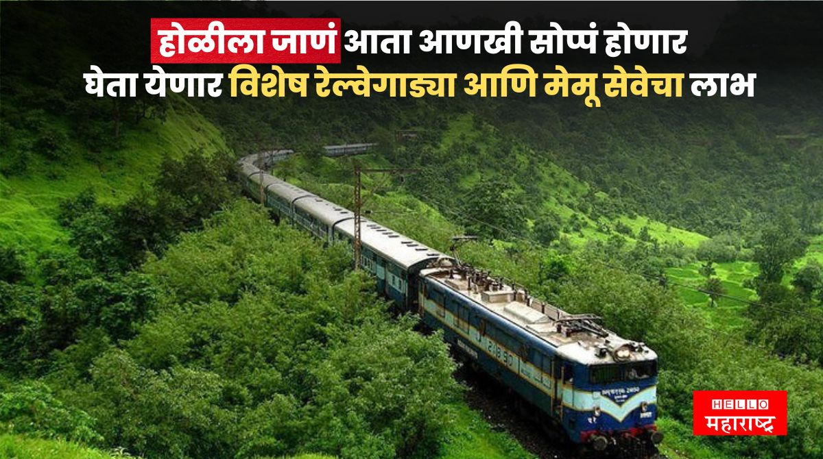 होळीच्या सुट्ट्यांमध्ये कोकण विभागात जाणाऱ्या पर्यटकांची संख्या वाढत आहे. त्यासाठी, गर्दीवर नियंत्रण ठेवण्यासाठी आणि प्रवाश्यांना अधिक आरामदायक प्रवासाची सोय करण्यासाठी, रेल्वेने विशेष रेल्वेगाड्या आणि मेमू सेवा सुरू करण्याचा निर्णय घेतला आहे.