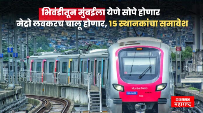 ठाणे-भिवंडी-कल्याण मेट्रो लाइन ५ प्रकल्पाचे ८० टक्के काम पूर्ण झाले आहे. हा मेट्रो मार्ग पूर्ण झाल्यावर, लोकलच्या गर्दीवर ताण कमी होईल. या मार्गावर एकूण १५ स्थानकं असतील, ज्यामुळे भिवंडीतून मुंबईकडे येणाऱ्यांसाठी प्रवास अधिक सोपा आणि आरामदायी होईल.