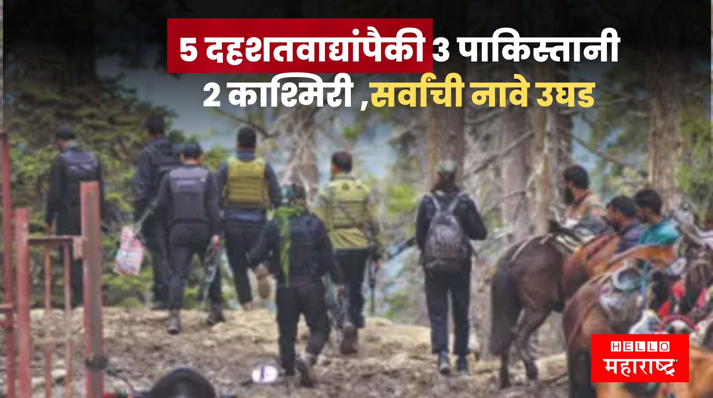Pahalgam Terror Attack : जम्मू-कश्मीरमधील पहलगाम येथे झालेल्या दहशतवादी हल्ल्याच्या चौकशीला वेग आला असून, तपास यंत्रणांनी पाच दहशतवाद्यांची ओळख पटवली आहे. यामध्ये तीन पाकिस्तानी नागरिक आणि दोन जम्मू-कश्मीरमधील स्थानिकांचा समावेश आहे. गेल्या दोन दशकांतील एक मोठा हल्ला मानल्या जाणाऱ्या या घटनेमागे असलेल्या कटकर्त्यांना पकडण्यासाठी यंत्रणांनी प्रयत्न सुरू केले आहेत.