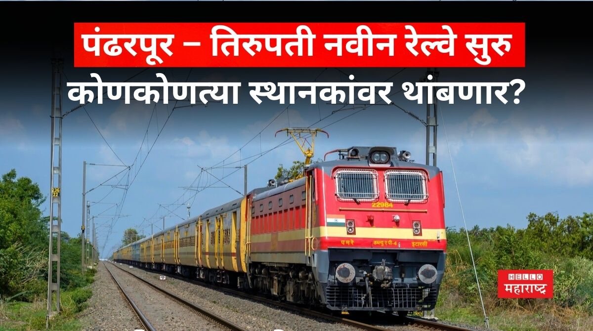 हॅलो महाराष्ट्र ऑनलाईन Pandharpur Tirupati Train । देवदर्शन करणाऱ्या भाविकांसाठी आनंदाची बातमी आहे. मागील अनेक दिवसापासून पंढरपूर ते तिरुपती बालाजी रेल्वेसेवा सुरु करण्याची मागणी भाविकांकडून केली जात होती. अखेर या रेल्वेला ग्रीन सिग्नल मिळाला असून १३ डिसेंबरपासून हि ट्रेन चालवण्यात येणार आहे. मध्य रेल्वेच्या सोलापूर विभागीय सल्लागार समितीचे सदस्य संजय निलेगांवकर यांनी याबाबत माहिती दिली आहे. विठुरायाचे भक्त आणि तिरुपती बालाजीच्या भाविकांसाठी हि ट्रेन वरदान ठरणार आहे. तसेच देशातील हि २ प्रमुख तीर्थक्षेत्रे या नव्या रेल्वेमुळे जोडली जाणार आहेत.