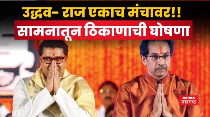 हॅलो महाराष्ट्र ऑनलाईन Raj And Uddhav Thackeray। पहिलीपासून हिंदी भाषा शिकवण्याच्या राज्य सरकारच्या निर्णयाला उद्धव ठाकरे आणि राज ठाकरे या दोघांनी तीव्र विरोध केला होता. ५ जुलैला मुंबईत ठाकरे बंधूंचा एकत्रित मोर्चाही होणार होता, परंतु त्यापूर्वीच सरकारने त्रिभाषा सूत्राचे दोन्ही निर्णय रद्द केल्याची घोषणा केली. मात्र तरीही ठाकरे बंधूना एकत्र येण्यापासून आता कोणी रोखू शकत नाही, कारण सरकारच्या निर्णयानंतर मोर्चा जरी रद्द झाला असला तरी आम्ही ५ जुलैला विजयी मेळावा काढू असं मनसे आणि ठाकरे गटाकडून सातत्याने सांगण्यात येत होत. अखेर आज सामनातून याबाबत स्पष्ट माहिती देत दोन्ही बंधूंचा मेळावा कुठे होणार? त्या ठिकाणाबाबत मोठी घोषणा केली आहे.