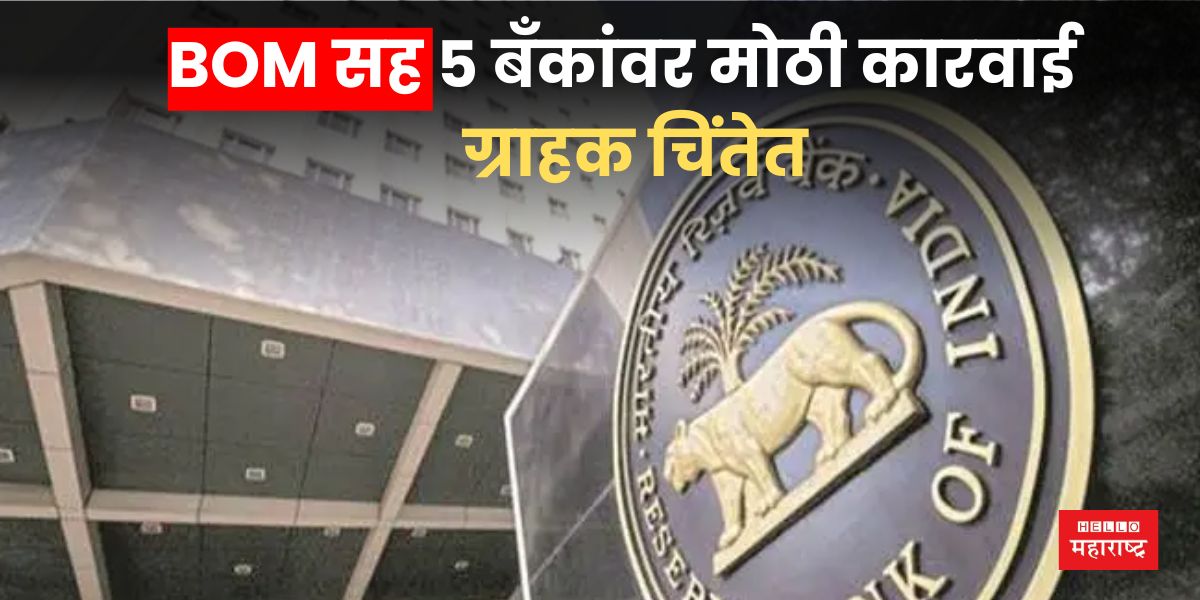 देशातील पाच प्रमुख बँकांवर रिझर्व्ह बँक ऑफ इंडियाने (RBI) मोठी दंडात्मक कारवाई केली असून, यामध्ये सार्वजनिक क्षेत्रातील बँक ऑफ महाराष्ट्रचाही समावेश आहे. KYC (Know Your Customer) नियमांचे उल्लंघन केल्यामुळे बँक ऑफ महाराष्ट्रवर 31.80 लाख रुपयांचा दंड आकारण्यात आला आहे.