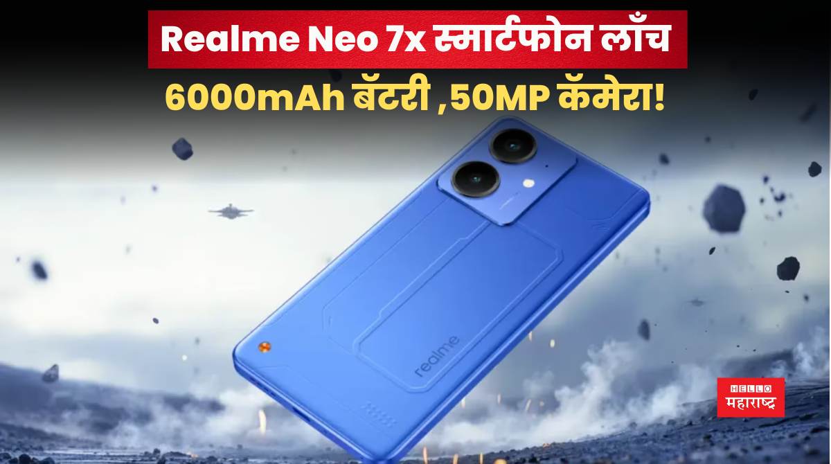 हॅलो महाराष्ट्र ऑनलाईन । Realme ने चीनमध्ये आपला नवीन स्मार्टफोन ‘Realme Neo 7x’ लाँच केला आहे. या नवीन रियलमी स्मार्टफोनमध्ये क्वालकॉमचा 4nm ऑक्टा-कोर स्नॅपड्रॅगन 6 Gen 4 चिपसेट, 12GB पर्यंत RAM आणि 6000mAh ची मोठी बॅटरी अन यासारखे आकर्षक फीचर्स दिले गेले आहेत. रियलमी नियो 7x मध्ये 50MP चा प्राथमिक रियर कॅमेरा आणि 16 मेगापिक्सल फ्रंट कॅमेरा दिला गेला आहे.
