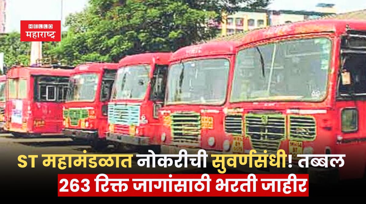 हॅलो महाराष्ट्र ऑनलाईन| सरकारी नोकरीच्या (Government Job) शोधात असणाऱ्या तरुणांसाठी आनंदाची बातमी आहे. महाराष्ट्र राज्य मार्ग परिवहन महामंडळात (ST Corporation) अप्रेंटिस पदांसाठी मोठी भरती जाहीर करण्यात आली आहे. या भरतीअंतर्गत तब्बल २६३ जागा भरल्या जाणार आहेत. त्यामुळे इच्छुक आणि पात्र उमेदवारांनी लवकरात लवकर अर्ज सादर करावेत. तसेच संपूर्ण माहितीसाठी ही बातमी वाचावी.