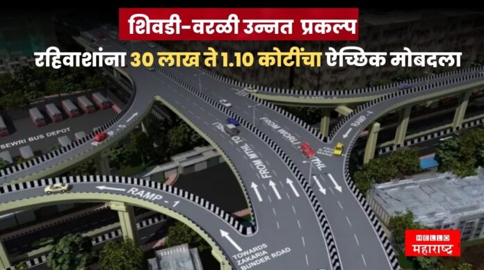शिवडी-वरळी उन्नत रस्त्याच्या महत्वाकांक्षी प्रकल्पात आता एक मोठा टप्पा पार पडताना दिसतो आहे. मुंबई महानगर प्रदेश विकास प्राधिकरण (MMRDA) ने प्रभादेवी परिसरातील हाजी नूरानी चाळ आणि लक्ष्मी निवास येथील ९३ प्रकल्पबाधितांना त्यांच्या घरांच्या बदल्यात आकर्षक आर्थिक मोबदल्याचा पर्याय दिला आहे. आणि तोही थेट ३० लाखांपासून ते तब्बल १ कोटी १० लाखांपर्यंत.