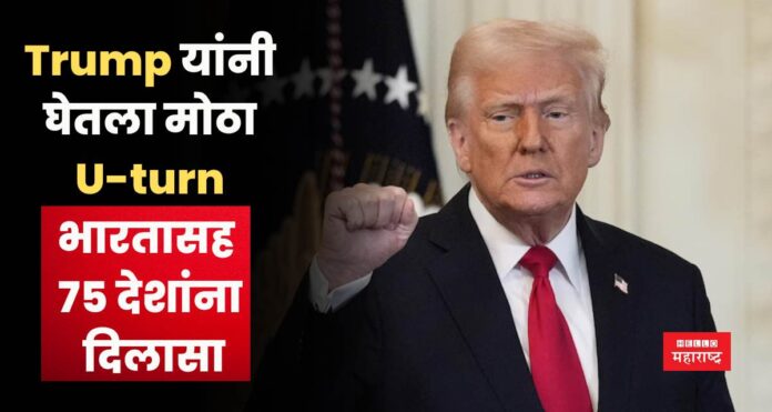 हॅलो महाराष्ट्र ऑनलाईन । अमेरिकेचे राष्ट्राध्यक्ष डोनाल्ड ट्रम्प यांचा टॅरिफ युद्धावर घेतलेला निर्णय आता थोडा मऊ झाला आहे. ट्रम्प यांनी आपल्या निर्णयावरून मोठा ‘यु-टर्न’ घेतला असून, भारतासह 75 देशांना दिलासा दिला आहे. तर दुसरीकडे, चीनवर त्यांनी कडक आर्थिक कारवाई सुरू ठेवली आहे. ट्रंप यांनी चीनवर 125% आयात शुल्क लागू करण्याची घोषणा केली होती, जे सध्याच्या स्थितीत मोठा आर्थिक दबाव निर्माण करत आहे. याआधी, अमेरिकेने आयात शुल्क 104% वर वाढवले होते, आणि त्यानंतर चीनने अमेरिकेच्या उत्पादनांवर आयात शुल्क 84% पर्यंत वाढवले होते.