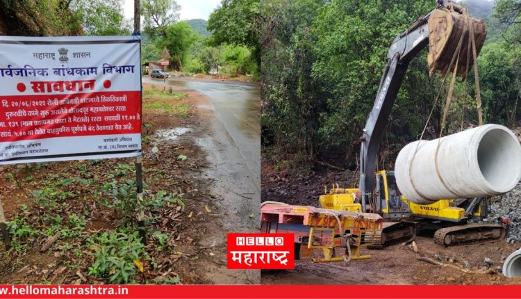आ. मकरंद पाटील यांनी केलेल्या सुचने प्रमाणे सार्वजनिक बांधकाम उपविभाग महाबळेश्वर येथील उपविभागीय अभियंता महेश गोंजारी यांनी कामाचे नियोजन केले असुन उद्या सोमवार (दि. 20) जुन रोजी महाबळेश्वर- पोलादपुर या रस्त्यावरील किल्ले प्रतापगड फाटा ते मेटतळे या दरम्यानचा घाटरस्ता व कुंभरोशी येथुन पारफाटा ते देवळी हा रस्ता असे दोन रस्ते दुरूस्तीच्या कामामुळे सर्व प्रकारच्या वाहतुकीसाठी बंद ठेवण्यात येणार आहेत. उद्या रस्त्यामध्ये पाईप टाकणे डोंगराकडील सुटलेला भाग की जो पावसाळयात खाली येवून रस्ता बंद होण्याचा धोका आहे. तो सर्व भाग काढुन टाकण्यात येणार आहे. या शिवाय नदी, नाले, ओढे या पात्रातील अडथळे दुर करून पाण्याच्या प्रवाहाला नैसर्गिक मार्ग मोकळा करून देण्यात येणार आहे. तसेच कामाचा अंदाज घेऊन उर्वरीत काम हे बुधवारी देखील करण्यात येणार असल्याने बुधवारी देखील सदरचे मार्ग बंद ठेवण्यात येतील. तरी, या मार्गावरून वाहतुक करणारे प्रवासी वाहनांनी या बदलाची नोंद घ्यावी व सार्वजनिक बांधकाम विभागास सहकार्य करावे, असे आवाहन उपविभागीय अभियंता महेश गोंजारी यांनी केेले आहे.