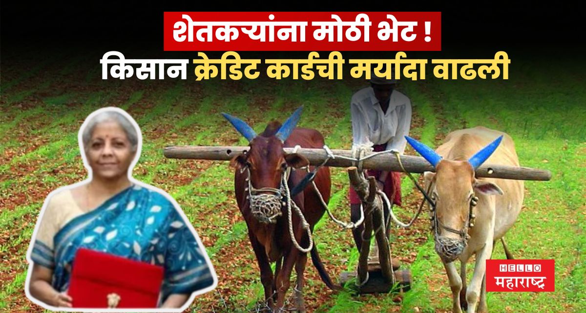 Union Budget 2025 : केंद्रीय अर्थमंत्री निर्मला सीतारामन आज संसदेत केंद्रीय बजेट 2025 सादर करत आहेत. अर्थमंत्री म्हणून त्यांचा हा सलग आठवा बजेट सादर करण्याचा प्रसंग आहे. यादरम्यान देशभरातल्या शेतकऱ्यांसाठी मोठी आनंदाची बातमी आहे. अर्थमंत्र्यांनी शेतकऱ्यांसाठी क्रेडिट कार्डची (Union Budget 2025 ) मर्यादा वाढवण्याची मोठी घोषणा केली आहे. किसान क्रेडिट कार्ड (KCC) साठी कर्ज मर्यादा 3 लाख रुपयांवरून 5 लाख रुपये करण्यात आली आहे.